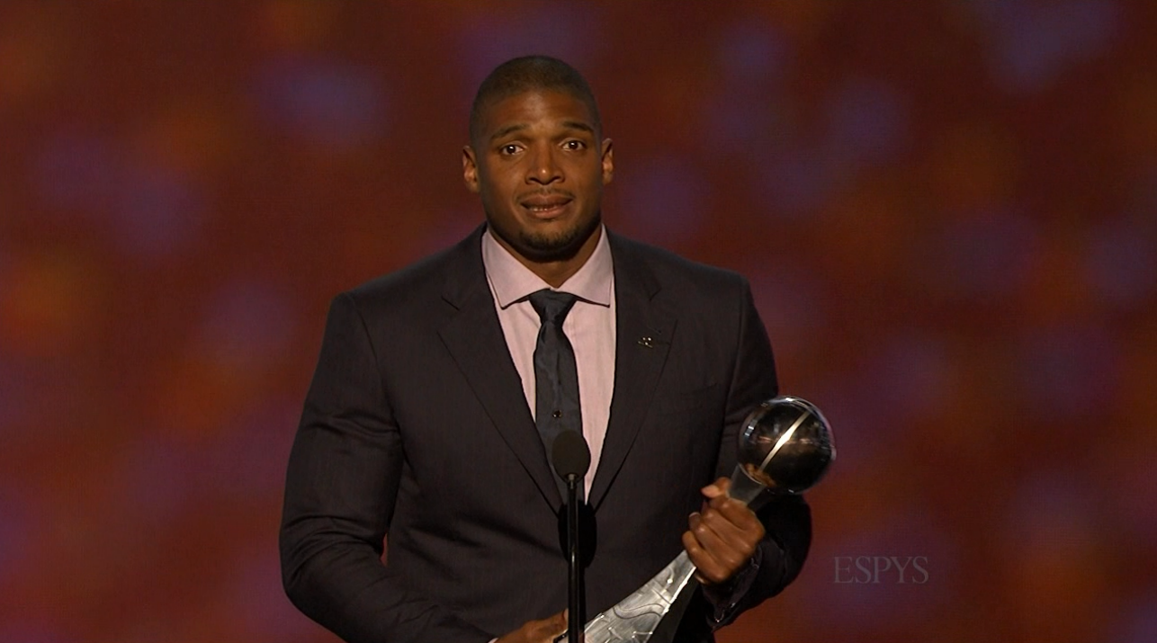 Michael Sam was given the Arthur Ashe Courage Award at the 2014 ESPYs on Wednesday night. His acceptance speech was incredibly powerful. Enjoy!